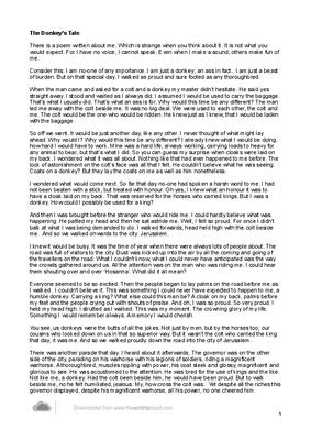 Consider this: I am no-one of any importance. I am just a donkey; an ass in fact. I am just a beast of burden. But on that special day, I walked as proud and sure footed as any thoroughbred.