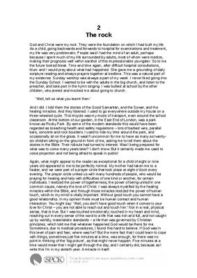 God and Christ were my rock. They were the foundation on which I had built my life. As a child, going backwards and forwards to hospital for examinations and treatment, my life was very problematic. People said I had the mind of an adult, perhaps because I spent much of my life surrounded by adults, most of whom were medics, making their prognosis well within earshot of this impressionable youngster. So to me the future looked bleak. Time and time again, after difficult hospital consultations, Mum and I would pray about what had happened. She gave me a grounding of daily scripture reading and always prayers together at bedtime. This was a natural part of my existence. Sunday worship was always a part of my week. I never liked going into the Sunday School. I wanted to be with the adults in the big church, and listen to the preacher, and take part in the hymn singing. I was bullied at school by the other children, who jeered and mocked me about going to church...