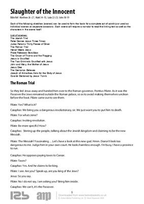 Each of the following sketches (scenes) can be used to form the basis for a complete act of worship or used as individual scenes on separate occasions. Each scene will require a narrator to read the linking text as well as the characters in the scene itself.