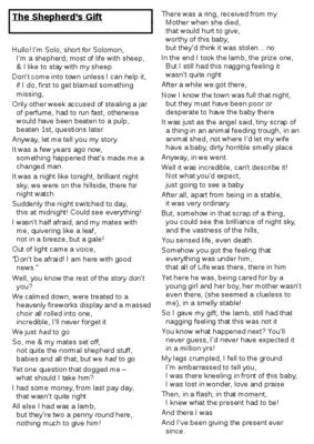One of two monologues, the other being "The Wise Man's Gift."