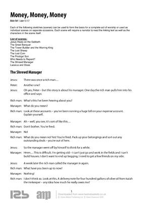 Each of the following sketches (scenes) can be used to form the basis for a complete act of worship or used as individual scenes on separate occasions. Each scene will require a narrator to read the linking text as well as the characters in the scene itself.