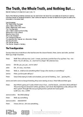 Each of the following sketches (scenes) can be used to form the basis for a complete act of worship or used as individual scenes on separate occasions. Each scene will require a narrator to read the linking text as well as the characters in the scene itself.