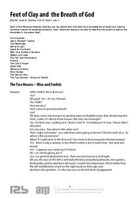 Each of the following sketches (scenes) can be used to form the basis for a complete act of worship or used as individual scenes on separate occasions. Each scene will require a narrator to read the linking text as well as the characters in the scene itself.