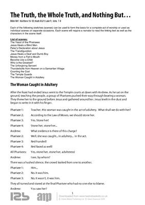 Each of the following sketches (scenes) can be used to form the basis for a complete act of worship or used as individual scenes on separate occasions. Each scene will require a narrator to read the linking text as well as the characters in the scene itself.