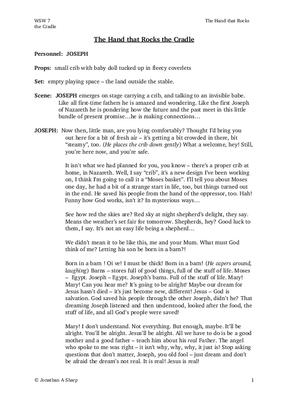 A solo piece for Joseph who carries his newborn son in a makeshift crib.