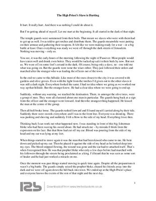 This one deals with the events of the arrest of Jesus in the garden and all that follows from the point of view of the High Priest's slave who had his ear cut off.