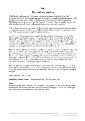 Thoughts taken from TV and Books on various topics and given a Christian slant to stimulate thoughts. The topic here for Day 3 is Superhero's. Bible reading: Luke 4:31-44