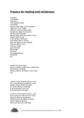 Prayers for healing and wholeness in our lives, and a reminder that healing is more than just a cure for the particular illness that affects us now; it affects body, mind and spirit - it's about knowing peace and assurance in our lives, despite the situation we find ourselves in at the present moment.