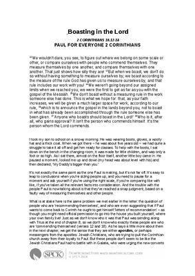 I took my son to school on a snowy morning. He was wearing boots, gloves, a woolly hat and a thick coat. When we got there – he was about five years old – we had quite a struggle to take it all off and get him ready for classes. To help with the boots, I sat down on the bench in the changing room; it was made for little children, and was only a foot or so high. As I sat there, almost on the floor itself, another little boy came in. He paused a moment, looked me up and down (my head was about level with his) and then declared, ‘My Daddy’s bigger than you.’...