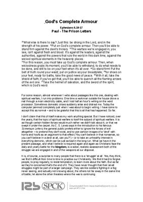 For some reason, almost whenever I write about passages like this one, dealing with spiritual warfare, I run into problems. One time a workman outside the house drove a nail through a main electricity cable, and I lost half an hour’s writing on the word processor. Sometimes domestic crises suddenly arise and distract me. Today the computer jammed completely just when I was about to begin writing. I have come to accept this as normal – and to be grateful that this is all that has happened. So far...