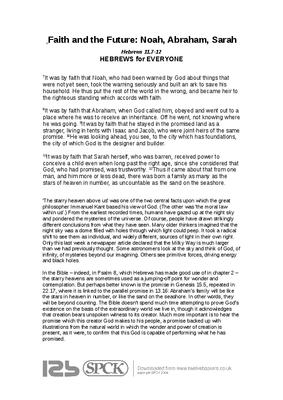 Faith and the Future: Noah, Abraham, Sarah
