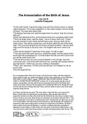Ask a newspaper editor what sort of stories will sell the most copies, and three categories come swiftly to mind: sex, royalty and religion. If they can be combined, so much the better.’ POP STAR’S LOVE CHILD’ is good; ‘PRINCESS HAS SECRET AFFAIR’ is better; ‘KING’S SECRET NIGHT WITH NUN’ is better still. So when people read the story of Gabriel visiting Mary, with the child to be born being the future Lord of the World, their minds easily jump in the way the newspapers have conditioned them to do. People have read into the story all sorts of things that aren’t there, and have failed to notice some of the really important things that are...