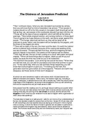 Many people have felt, reading Luke 21, as though Jesus is setting us a puzzle rather like that. How can we make sense of an event which involves armies round a city, the roaring of the sea, the coming of the son of man on a cloud, and the arrival of the kingdom of God? And how can whatever-it-is be said to happen within a generation of when Jesus was speaking?...