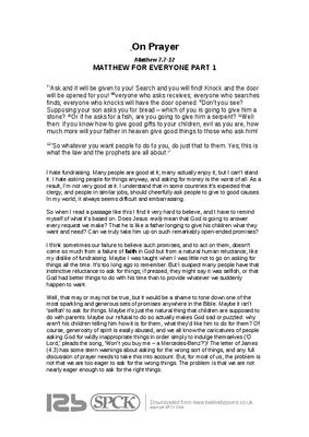 So when I read a passage like this I find it very hard to believe, and I have to remind myself of what it’s based on. Does Jesus really mean that God is going to answer every request we make? That he is like a father longing to give his children what they want and need? Can we truly take him up on such remarkably open-ended promises?...
