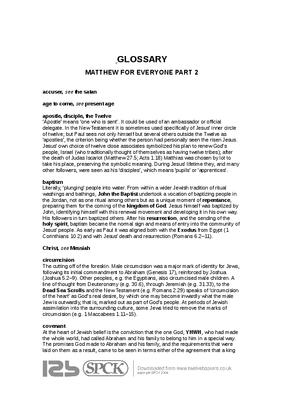 ‘Apostle’ means ‘one who is sent’. It could be used of an ambassador or official delegate. In the New Testament it is sometimes used specifically of Jesus’ inner circle of twelve; but Paul sees not only himself but several others outside the Twelve as ‘apostles’, the criterion being whether the person had personally seen the risen Jesus. Jesus’ own choice of twelve close associates symbolized his plan to renew God’s people, Israel (who traditionally thought of themselves as having twelve tribes); after the death of Judas Iscariot (Matthew 27.5; Acts 1.18) Matthias was chosen by lot to take his place, preserving the symbolic meaning. During Jesus’ lifetime they, and many other followers, were seen as his ‘disciples’, which means ‘pupils’ or ‘apprentices’...