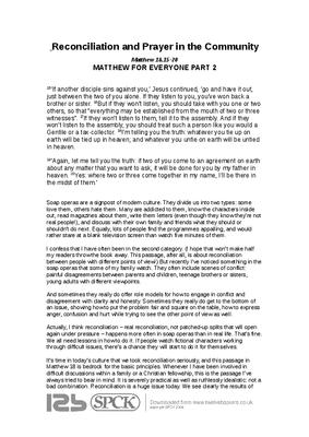 Reconciliation and Prayer in the Community