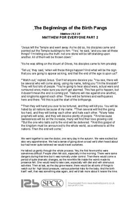 He talked us gently through the whole process. Yes, the first few months were sometimes difficult. People often felt sick, especially in the morning. There were some dangers during that time but it was normally under control. Then there would come a period of quite dramatic changes, as the new little life inside the womb made its presence felt. One would need to take care, especially with diet and with strenuous activities. Then at last, as the day grew nearer, there would be all sorts of things to watch out for: high blood pressure, various potential risks for the baby. And the birth itself: well, that was something else again, and we’d talk more about it nearer the time. But our task in the meantime was to take care, be patient, and not be alarmed by some of the strange things that were going to happen...