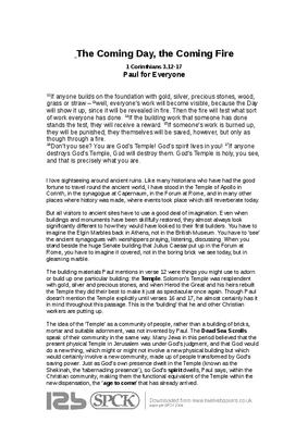 Taken from Paul 1 Corinthians for Everyone – by Tom Wright