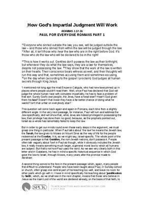‘I mentioned not long ago the mad Emperor Caligula, who had new laws pinned up in places where people couldn’t read them. Well, once Paul has declared that God will judge the whole human race with complete impartiality, he has to face a problem of that sort. Surely God’s own people, the Jews, have a head start? Hasn’t God given them his law? Doesn’t that mean they have a far better chance of doing what he wants? Isn’t that unfair on everybody else?...
