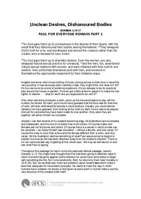 Unclean Desires, Dishonoured Bodies