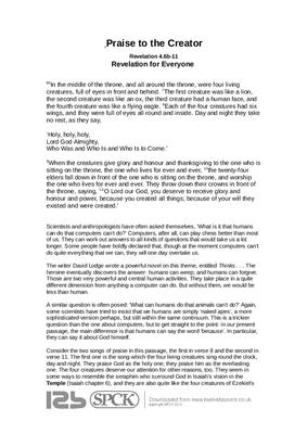 Scientists and anthropologists have often asked themselves, ‘What is it that humans can do that computers can’t do?’ Computers, after all, can play chess better than most of us. They can work out answers to all kinds of questions that would take us a lot longer. Some people have boldly declared that, though at the moment computers can’t do quite everything that we can, they will one day overtake us...