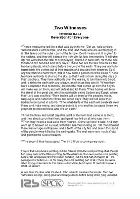 People find many books puzzling, but the Bible is often the most puzzling of all. People find many parts of the Bible puzzling, but Revelation is often seen as the most puzzling book of all. And people find Revelation puzzling, but the first half of chapter 11 – the passage now before us – is, for many, the most puzzling part of all. (There are some other strong contenders for this dubious distinction, but chapter 11 can hold its own.) What is it about?...