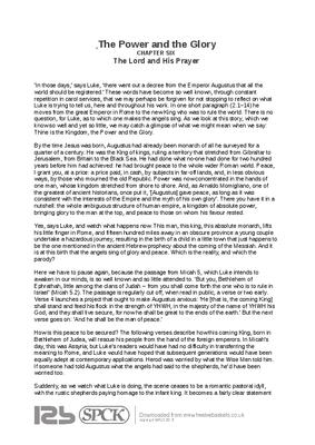 ‘In those days,’ says Luke, ‘there went out a decree from the Emperor Augustus that all the world should be registered.’ These words have become so well known, through constant repetition in carol services, that we may perhaps be forgiven for not stopping to reflect on what Luke is trying to tell us, here and throughout his work. In one short paragraph (2.1–14) he moves from the great Emperor in Rome to the new King who was to rule the world. There is no question, for Luke, as to which one makes the angels sing. As we look at this story, which we know so well and yet so little, we may catch a glimpse of what we might mean when we say: Thine is the Kingdom, the Power and the Glory...