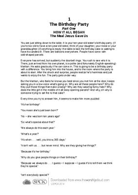 You are just sitting down to the table. It is your ten-year-old sister’s birthday party. (If you’re too old to have a ten-year-old sister, think of your daughter, your niece or your granddaughter.) Everything is ready: the table is laid; the birthday cake is waiting to have its candles lit. There are balloons everywhere. People have come with odd-shaped parcels…