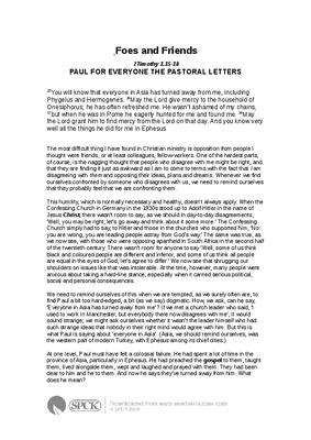 The most difficult thing I have found in Christian ministry is opposition from people I thought were friends, or at least colleagues, fellow-workers. One of the hardest parts, of course, is the nagging thought that people who disagree with me might be right, and that they are finding it just as awkward as I am to come to terms with the fact that I am disagreeing with them and opposing their ideas, plans and dreams. Whenever we find ourselves confronted by someone who disagrees with us, we need to remind ourselves that they probably feel that we are confronting them...