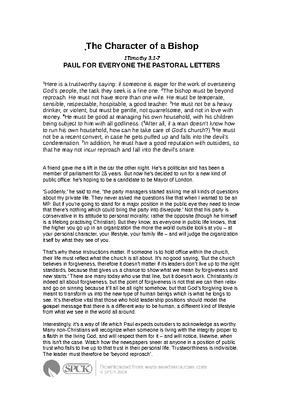 The Character of a Bishop