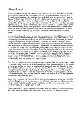 A vagabond and a sunset are objects of beauty, one we always appreciate the other we usually pass by. This reflection attempts to look at all of creation through God's eyes.