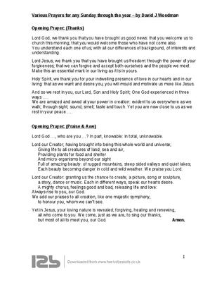 Various Prayers for any Sunday through the year –