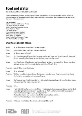 Each of the following sketches (scenes) can be used to form the basis for a complete act of worship or used as individual scenes on separate occasions. Each scene will require a narrator to read the linking text as well as the characters in the scene itself.