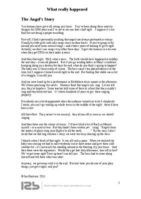 And then that night. Well, what a mess. The birth should have happened at midday the next day – it was all planned. But if you go sending ladies in Mary’s condition bumping along on a donkey for days for end, what do you think is going to happen? The baby was 12 hours early of course. The boss wasn’t too pleased about it at the time, but I suppose it turned out all right in the end. But finding that stable was a bit of a struggle, I can tell you...