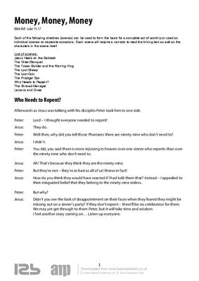 Each of the following sketches (scenes) can be used to form the basis for a complete act of worship or used as individual scenes on separate occasions. Each scene will require a narrator to read the linking text as well as the characters in the scene itself.