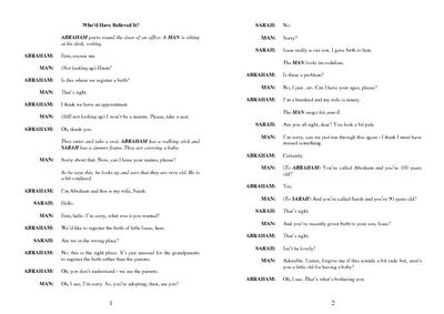 Sketch about Abraham and Sarah trying to register the birth of Isaac, but being greeted with some scepticism.