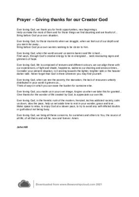 Prayer - Giving Thanks for Our Creator God - John Hill