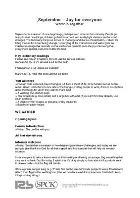 September is a season of new beginnings, perhaps even more so than January. People get ready to start new things, children go back to school, and as daylight shortens so the mood changes. The lectionary brings us stories to challenge and stories of celebration – which are fitting themes for those facing change. Underlying all the instructions and warnings is an insistent message that reminds us that each of us can hold on to the joy of knowing that everyone is special, everyone matters to God...